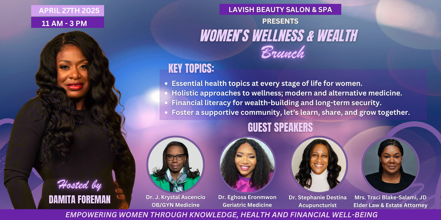 Our Women’s Wellness & Wealth Brunch is a transformative event designed to educate and empower women in two key areas—health and financial well-being. Featuring expert-led discussions from gynecologists, holistic medicine practitioners, geriatric physicians, and financial advisors, this seminar will provide women with the tools to take charge of their physical, emotional, and financial health.