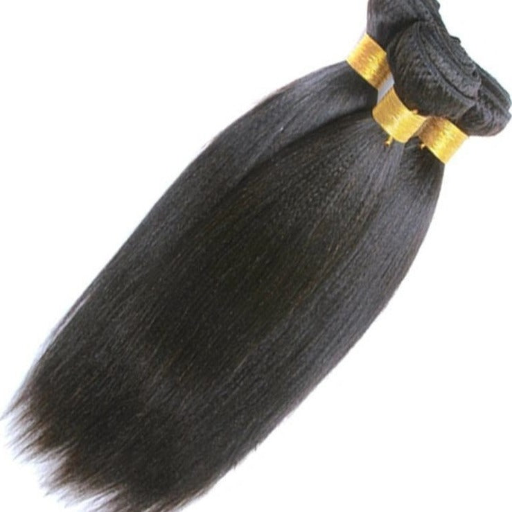 Shop our ultra sleek line of Indian Relaxed Straight weft hair extensions. This beauty is 100% unprocessed virgin human hair, with a light yaki texture which blends naturally with re;axed straight hair. These extensions can be worn in its natural state, curled or straightened for a sleeker look.